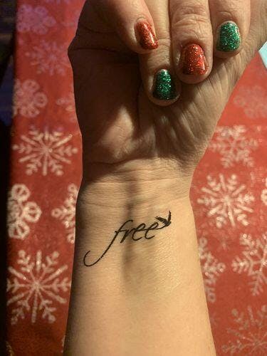 - Small free word with bird lettering tattoo design